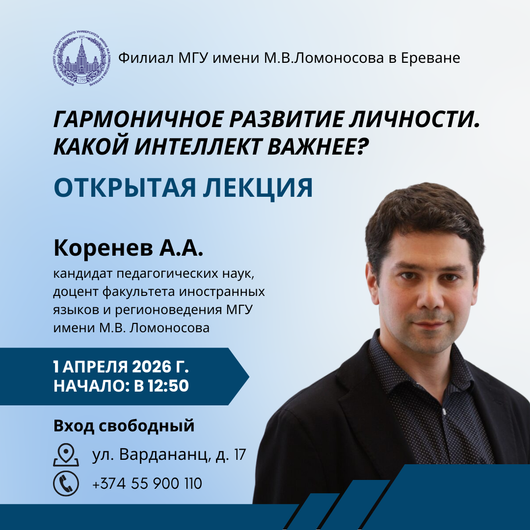 13 марта 2026 года в актовом зале Филиала Московского государственного университета имени М.В.Ломоносова в Ереване прошла встреча с видеоблогером Дмитрием Шиловым. Среди слушателей были студенты, гимназисты и просто те, кому интересна тема блогинга и создания собственного контента. Пришли, чтобы услышать из первых уст, как превращают камеру и идею в профессию и стиль жизни. Шилов вошёл […]