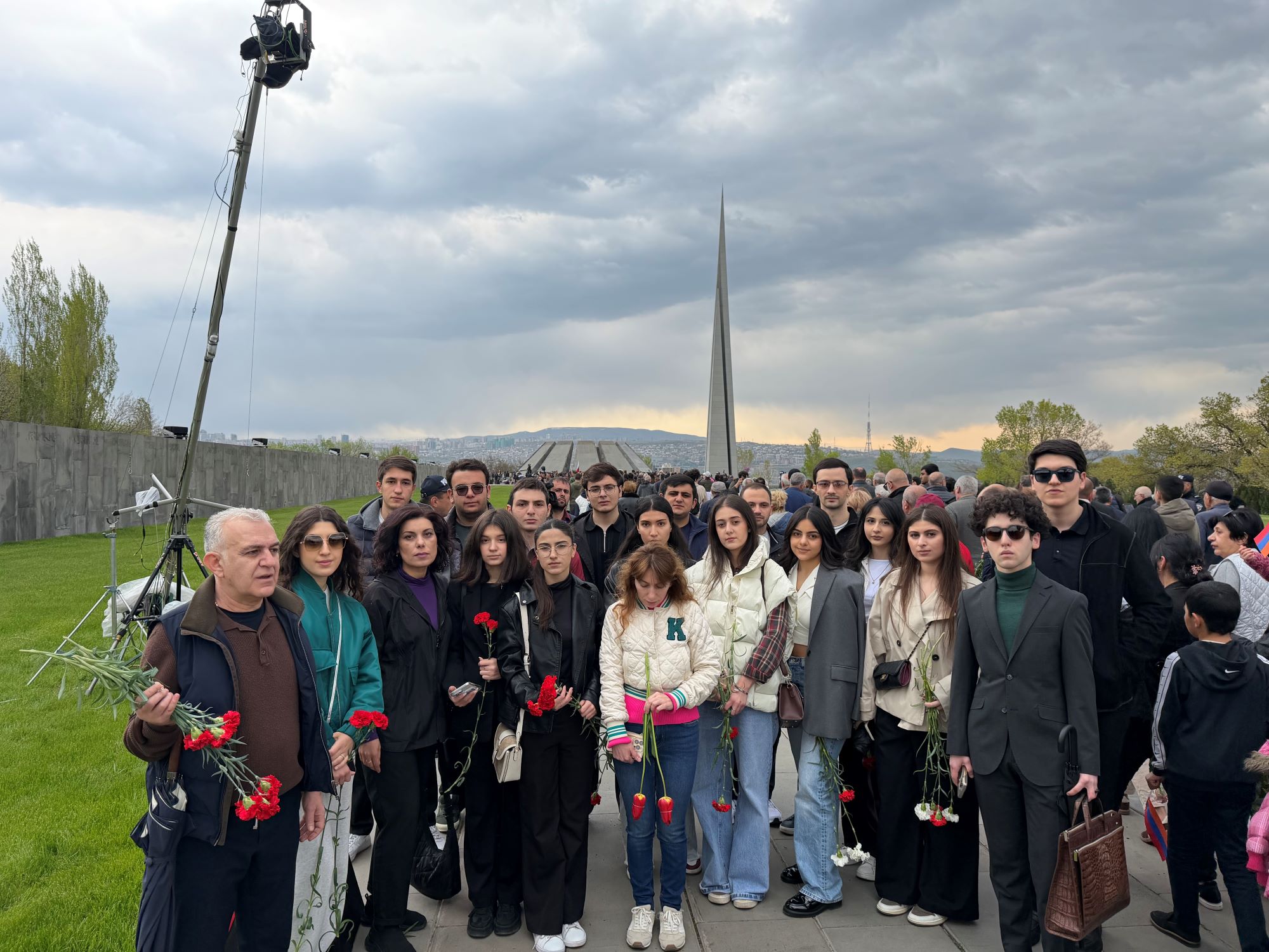 Студент 1 курса направления «Международные отношения» Эмиль Ганджалян: «Мы, студенты Филиала, с глубоким уважением посетили Цицернакаберд, чтобы почтить память жертв геноцида армян. Это место, где ощущается особая тишина и глубина, благодаря которым начинаешь иначе воспринимать историю и её значение, особенно в такую трагичную дату».