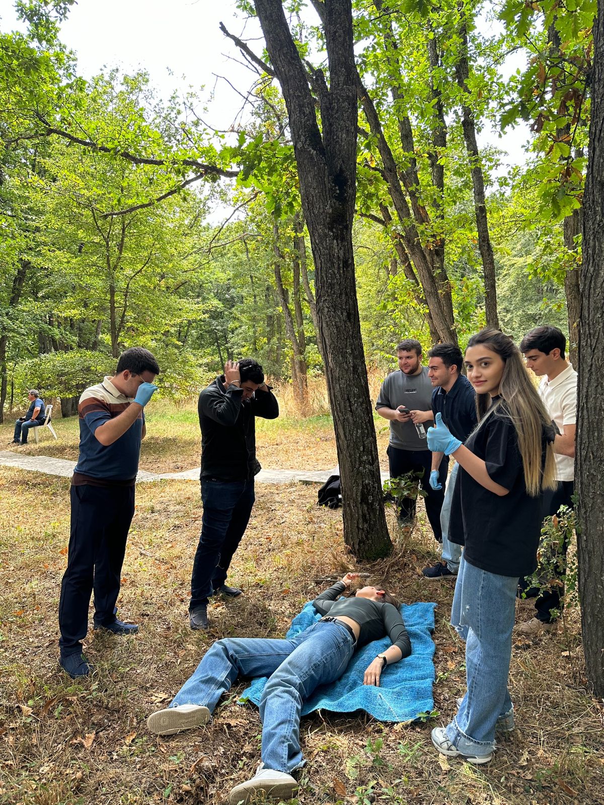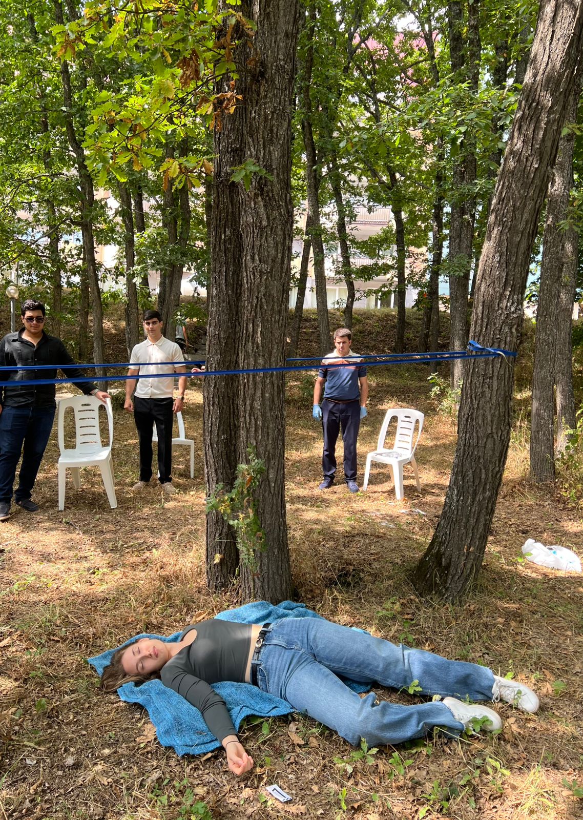 Практикум по криминалистике был организован в парковой зоне. Студенты выступили в ролях следователей, судебно-медицинских экспертов, криминалистов, сотрудников оперативной группы и специалистов. Основной задачей участников было проведение осмотра места происшествия в условиях, максимально приближенных к реальности.