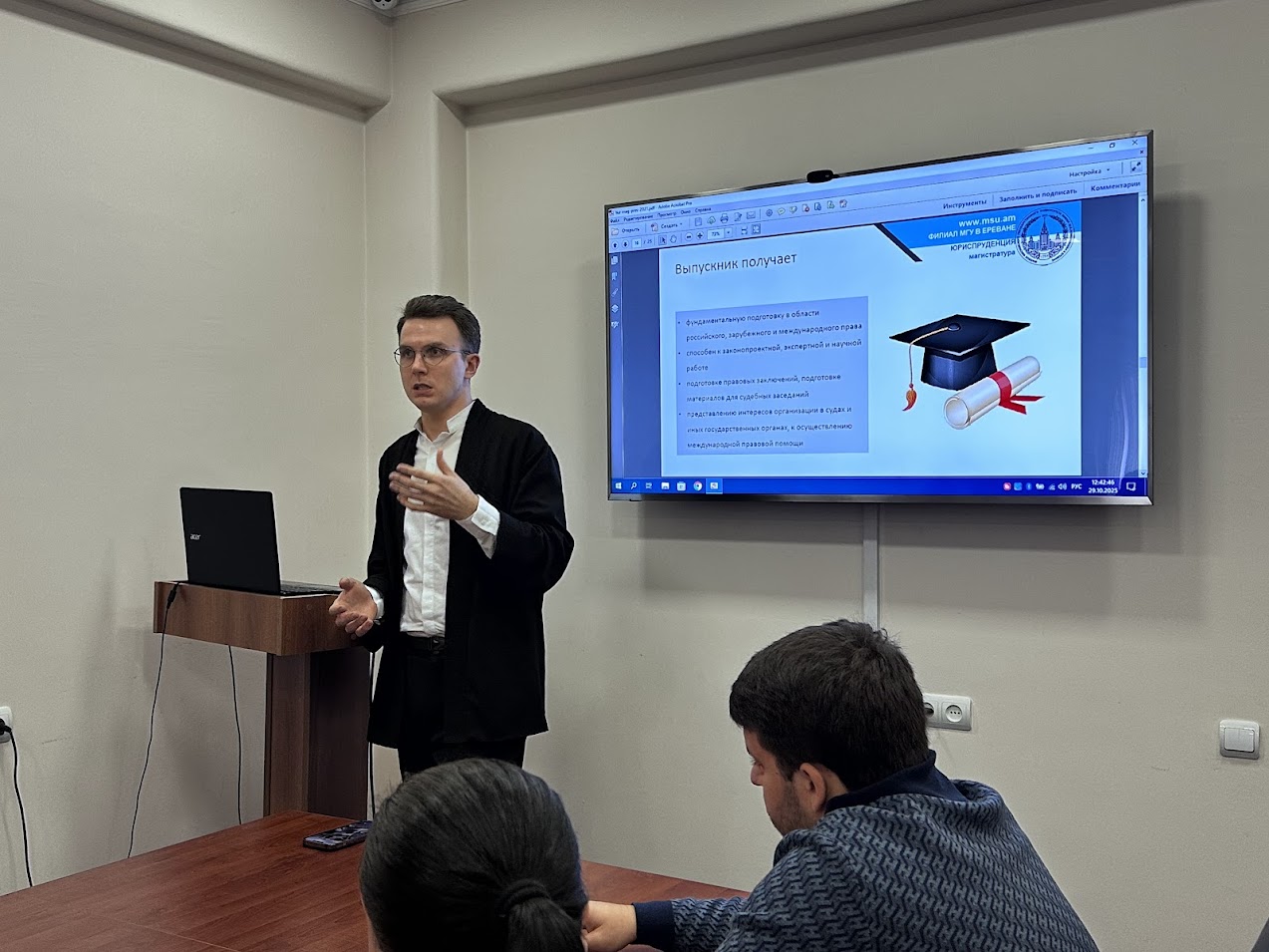 29 октября 2025 года в Филиале МГУ имени М.В. Ломоносова в Ереване состоялась встреча студентов с доцентом кафедры конституционного и муниципального права юридического факультета МГУ, начальником магистратуры факультета, кандидатом юридических наук Никитой Сергеевичем Малютиным. Презентация магистерской программы по направлению «Юриспруденция» (профиль — «Публичное право») собрала студентов бакалавриата, заинтересованных в продолжении обучения и профессиональном развитии. В […]