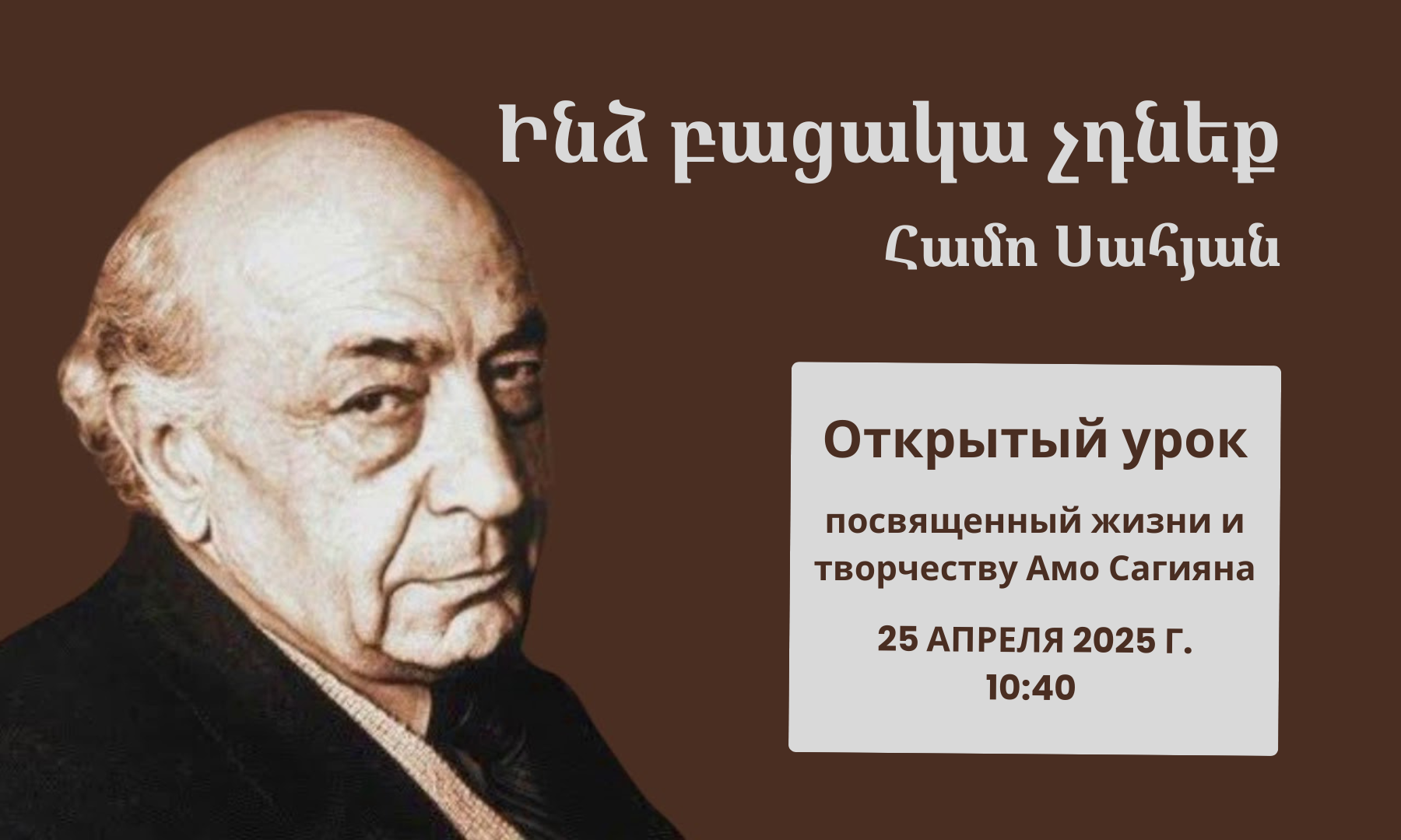 Тема: «Ինձ բացակա չդնեք — Не помечайте меня отсутствующим» Дата мероприятия: 25 апреля 2025 г. Начало: в 10:40 (по ереванскому времени) Мероприятие пройдет в очном формате по адресу: Филиал МГУ имени М.В. Ломоносова в городе Ереван РА, 0025 г. Ереван, ул. Вардананц, д. 17. Мероприятие проводится в рамках празднования: * 270-летия основания Московского государственного университета […]