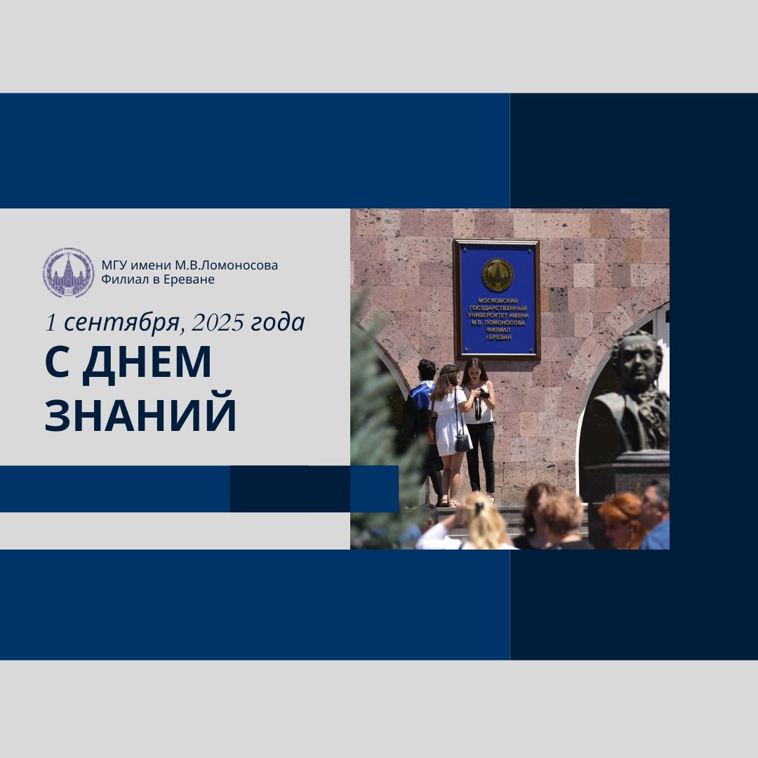 1 сентября 2025 года Дорогие первокурсники, студенты старших курсов, преподаватели и сотрудники Филиала МГУ в Ереване! Поздравляем вас с Днём знаний! Пусть этот учебный год принесёт яркие открытия, интересные встречи и заслуженные успехи. Приглашаем вас принять участие в праздничном мероприятии, посвящённом началу нового учебного года. Вас ждут тёплая атмосфера, вдохновляющие выступления и приятное общение в […]