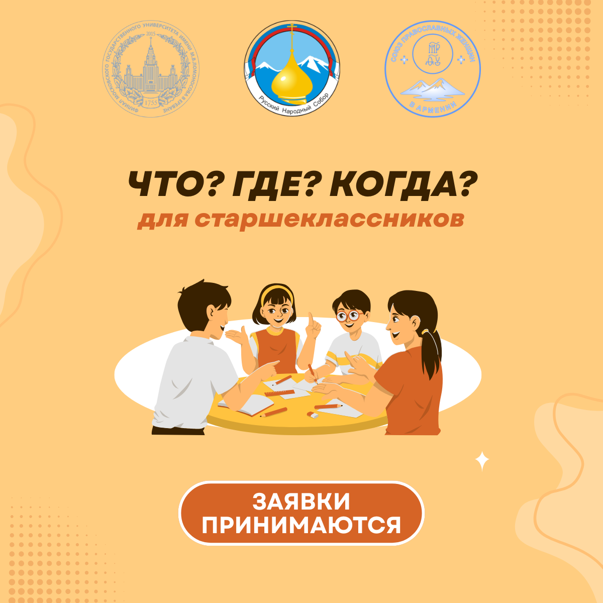 Филиал Московского государственного университета имени М.В.Ломоносова в Ереване совместно с общественными организациями «Русский народный собор» и «Союз православных женщин» приглашает учащихся старших классов общеобразовательных школ Республики Армения принять участие в чемпионате по интеллектуальным играм «Что? Где? Когда?» в рамках проекта «Русская КНИГА». Ближайшая игра планируется к проведению в середине апреля 2026 года. Мероприятие пройдет на […]