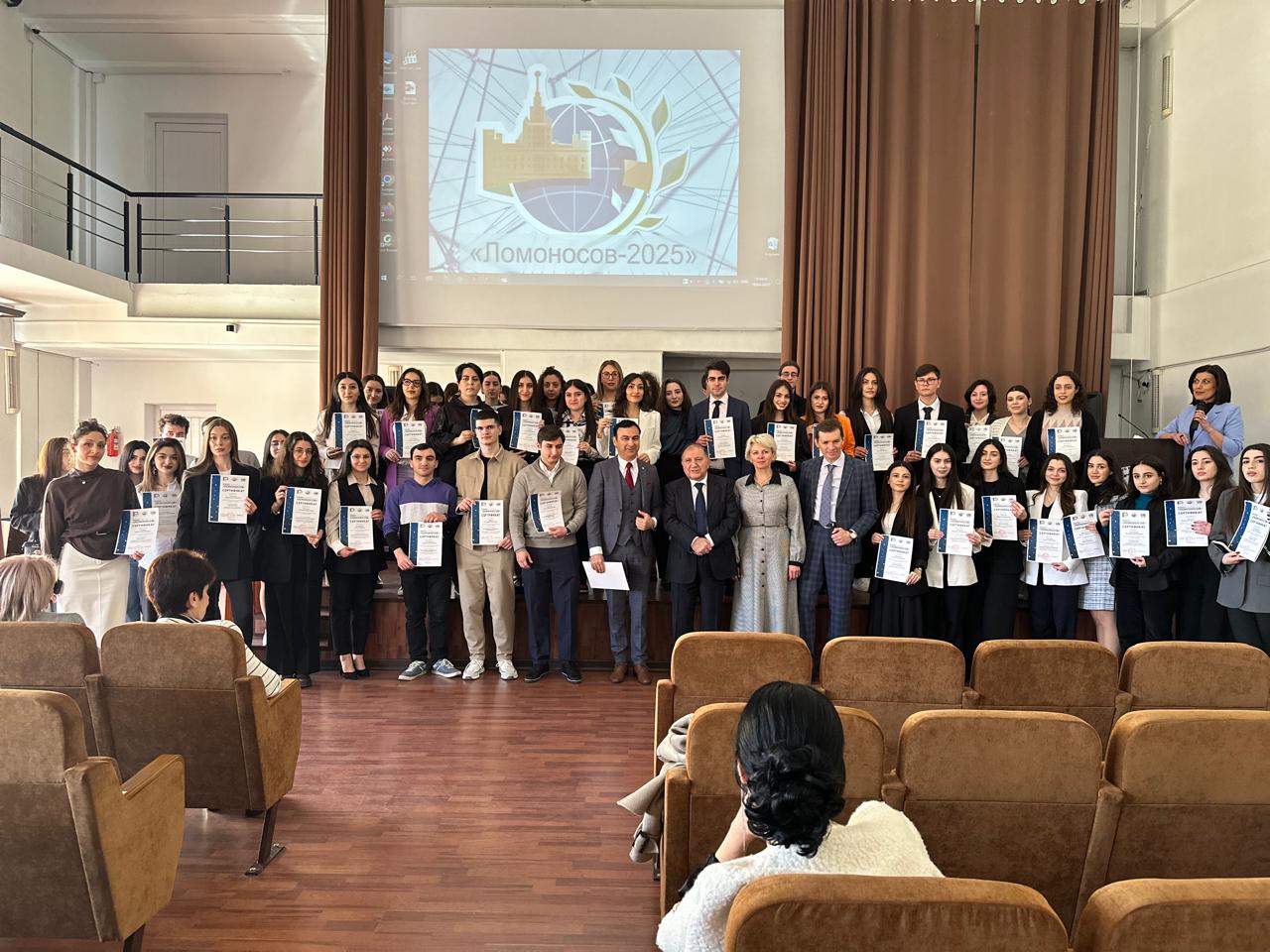 18 апреля 2025 года в Филиале МГУ в Ереване состоялась ежегодная Международная научная конференция студентов, аспирантов и молодых ученых «Ломоносов 2025». Пленарное заседание конференции началось в актовом зале с приветственных речей: директора Филиала А.Н. Реймерса, советника Посольства Российской Федерации в Республике Армения М.В. Вождаева от имени Чрезвычайного и Полномочного посла Российской Федерации в Республике Армения […]