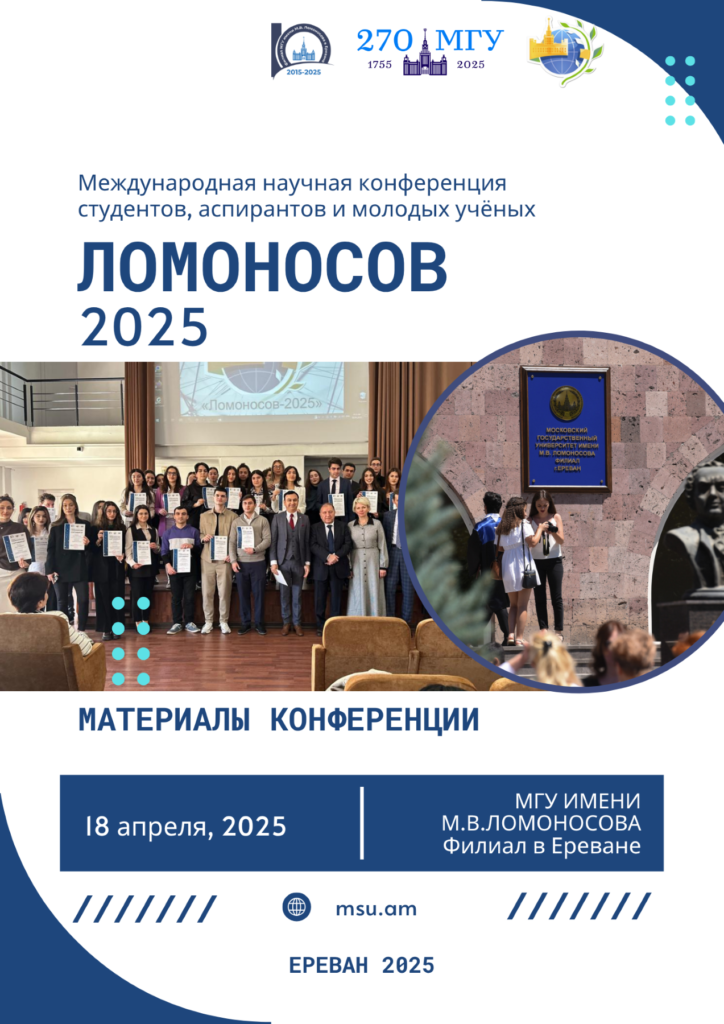 На сайте Филиала МГУ в Ереване опубликованы материалы Международной научной конференции студентов, аспирантов и молодых ученых «Ломоносов-2025» в Армении. В основу сборника легли результаты научных исследований, полученные при написании курсовых и выпускных квалификационных работ студентов бакалавриата и магистратуры Филиала, а также молодых ученых из других вузов России.