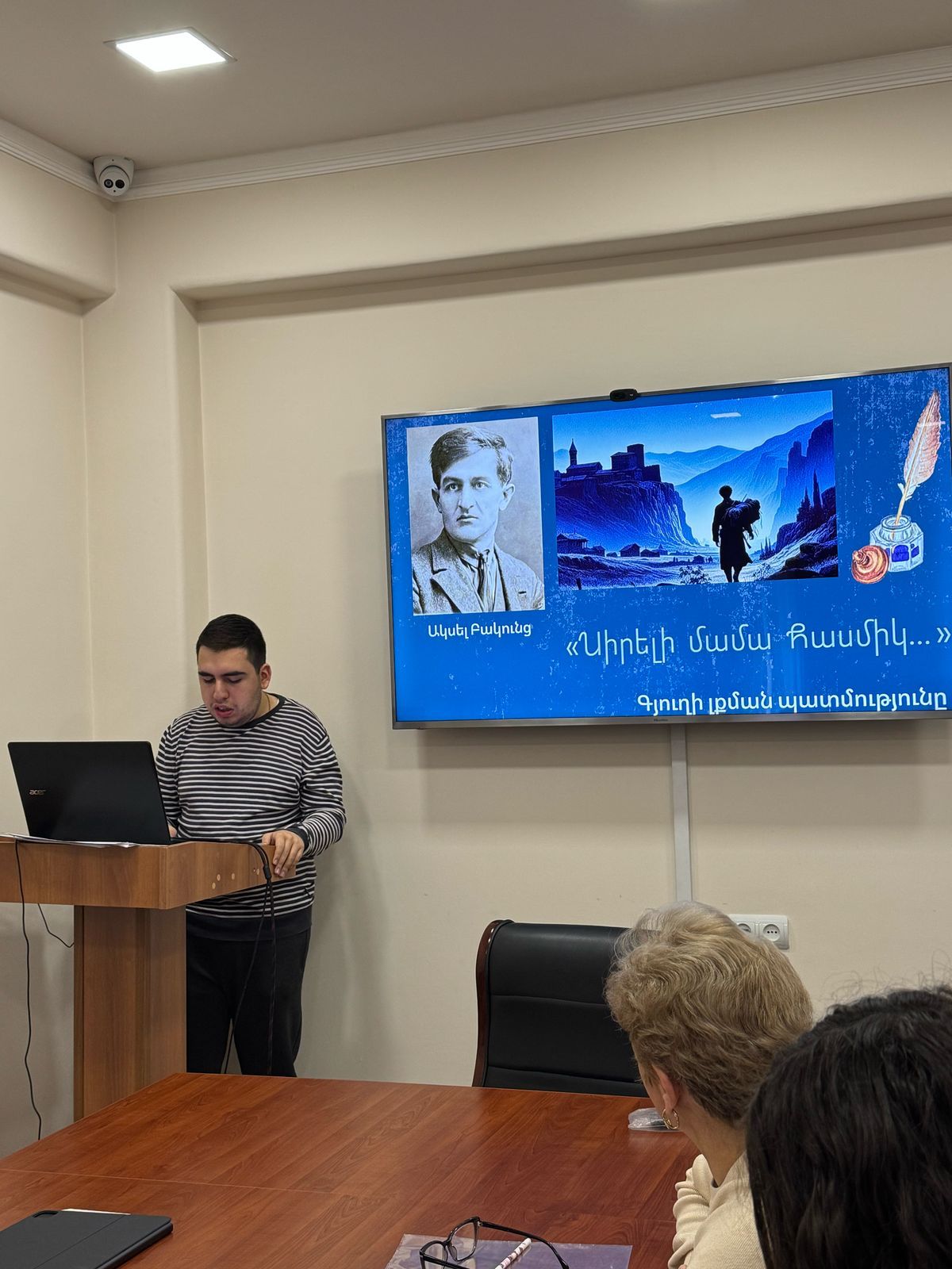 25 апреля 2025 года в Филиале МГУ в городе Ереван в рамках дисциплины «Армянский язык» под руководством кандидата филологических наук, доцента А.П. Карагулян состоялся открытый урок, посвященный 110-летию со дня рождения армянского поэта-философа Амо Сагияна (Амаяка Григоряна).