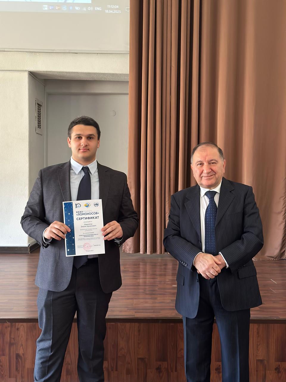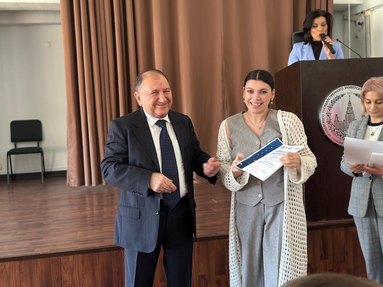 По завершении приветственной части конференции, все докладчики получили сертификаты из рук исполнительного директора Филиала МГУ в Ереване П.Д. Сафаряна.