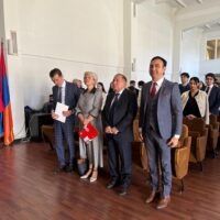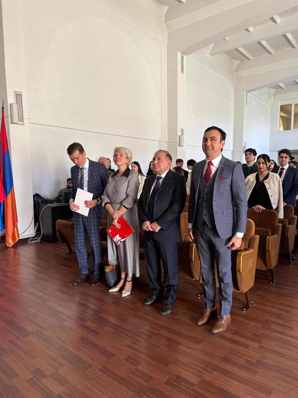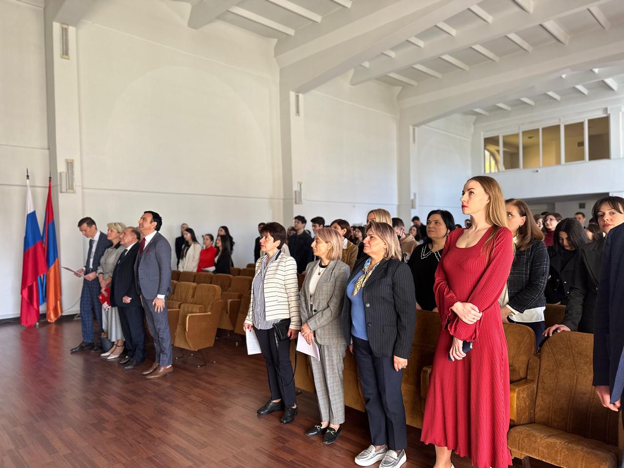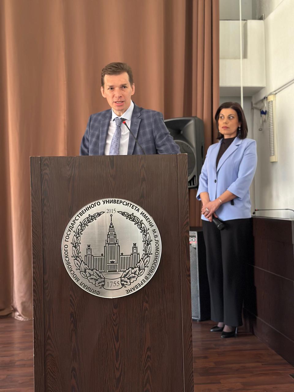 Чрезвычайный и полномочный посол Российской Федерации в Республике Армения С.П. Копыркин от всего коллектива Посольства России в Армении и от себя лично поздравил Московский университет и Филиал с двойным юбилеем и отметил важную роль Филиала в динамичном развитии двустороннего гуманитарного сотрудничества между Россией и Арменией.