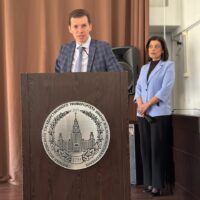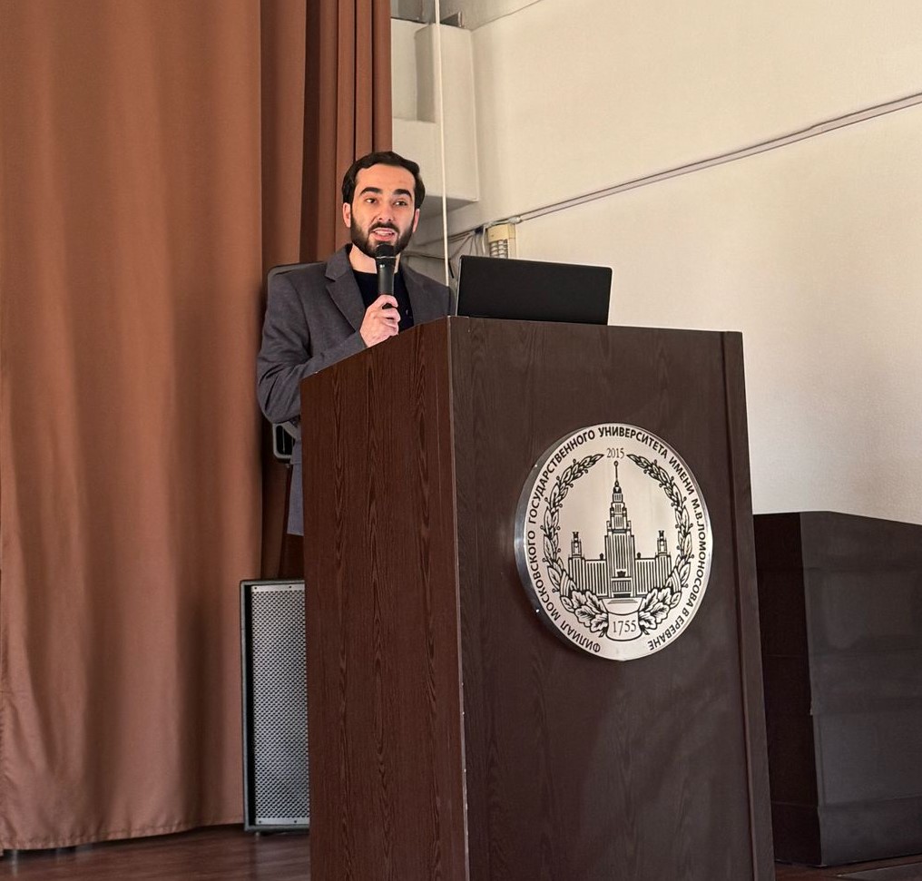 18 апреля 2025 года в Филиале МГУ в Ереване состоялась ежегодная Международная научная конференция студентов, аспирантов и молодых ученых «Ломоносов 2025». Пленарное заседание конференции началось в актовом зале с приветственных речей: директора Филиала А.Н. Реймерса, советника Посольства Российской Федерации в Республике Армения М.В. Вождаева от имени Чрезвычайного и Полномочного посла Российской Федерации в Республике Армения С.П. Копыркина, заместителя директора Русского дома в Армении В.М. Дерипаско от имени директора Русского дома в Армении В.П. Фефилова, доцента кафедры теории государства и права и политологии юридического факультета МГУ имени М.В.Ломоносова, кандидата юридических наук И.Ф. Мачина, доцента кафедры теории и экономики средств массовой информации факультета журналистики МГУ имени М.В. Ломоносова, кандидата филологических наук А.Ю. Образцовой.