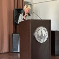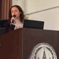 Доцент кафедры теории и экономики средств массовой информации факультета журналистики МГУ имени М.В. Ломоносова, кандидат филологических наук А.Ю. Образцова поздравила участников студенческой конференции от имени декана факультета журналистики МГУ, академика РАО Е.Л. Вартановой.