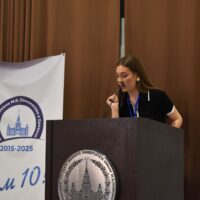 Кандидат культурологии, доцент факультета иностранных языков и регионоведения МГУ И.Л. Анастасьева посвятила своё выступление истории «Ломоносовских чтений», роли М.В. Ломоносова и И.И. Шувалова в основании Московского университета, а также подчеркнула преемственность научных традиций и значение участия студентов в научной деятельности.