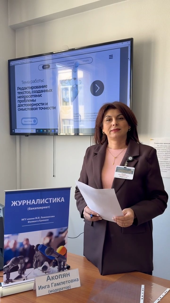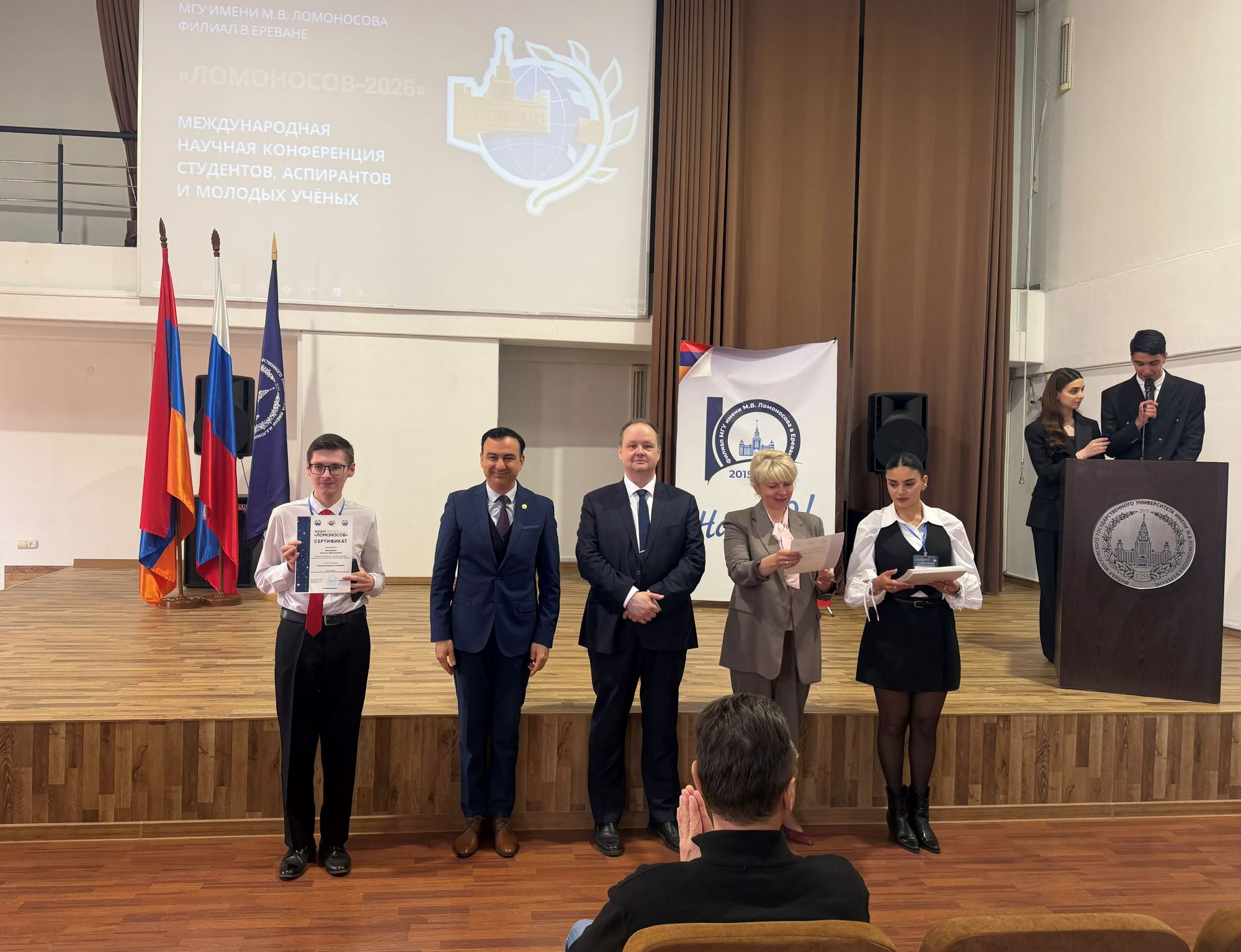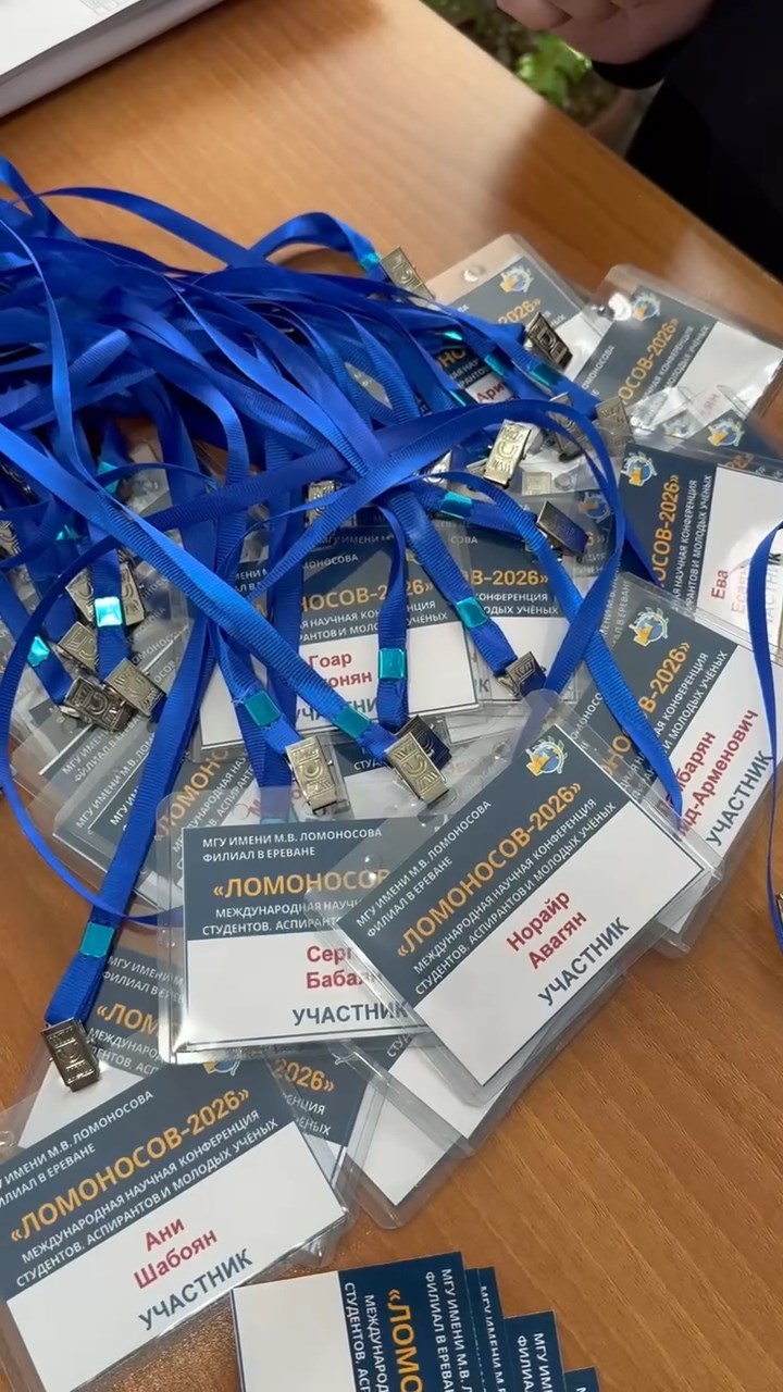 17 апреля 2026 года в Филиале Московского государственного университета имени М.В. Ломоносова в городе Ереване состоялась Международная научная конференция студентов, аспирантов и молодых учёных «Ломоносов – 2026». Мероприятие прошло в смешанном (очно-дистанционном) формате и объединило участников из Армении, России, Китая, Узбекистана и других стран.