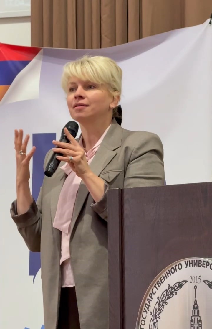 Заместитель руководителя представительства Россотрудничества в Армении Виктория Михайловна Дерипаско зачитала приветствие директора Российского центра науки и культуры в Ереване В.П. Фефилова: