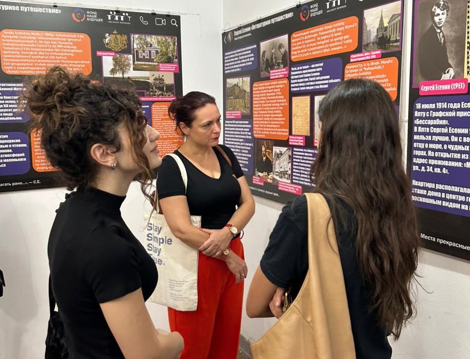 4 сентября 2025 года студенты направления подготовки «Лингвистика» в сопровождении кандидата филологических наук, доцента факультета иностранных языков и регионоведения МГУ имени М.В. Ломоносова Соловьёвой Ю.О. посетили выставку и стали участниками экскурсии, посвящённой жизни и творчеству поэта Сергея Есенина. По словам организаторов, экспозиция была оформлена «по-есенински» эффектно: по форме она напоминала красочный тревел-блог, а по содержанию — совместное документальное путешествие вокруг света.Гости вечера также смогли насладиться чтением стихов поэта и получить ответы на многие интересующие вопросы о Сергее Александровиче.