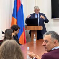 27 февраля 2026 года в Филиале МГУ имени М.В. Ломоносова в городе Ереван совместно с Фондом поддержки публичной дипломатии имени А.М. Горчакова в рамках Международной аналитической программы «Евразийский диалог. Армения» состоялась открытая лекция кандидата исторических наук, доцента, ведущего научного сотрудника Института международных исследований МГИМО Сергея Мирославовича Маркедонова на тему «Южный Кавказ: меняющийся регион в меняющемся мире».