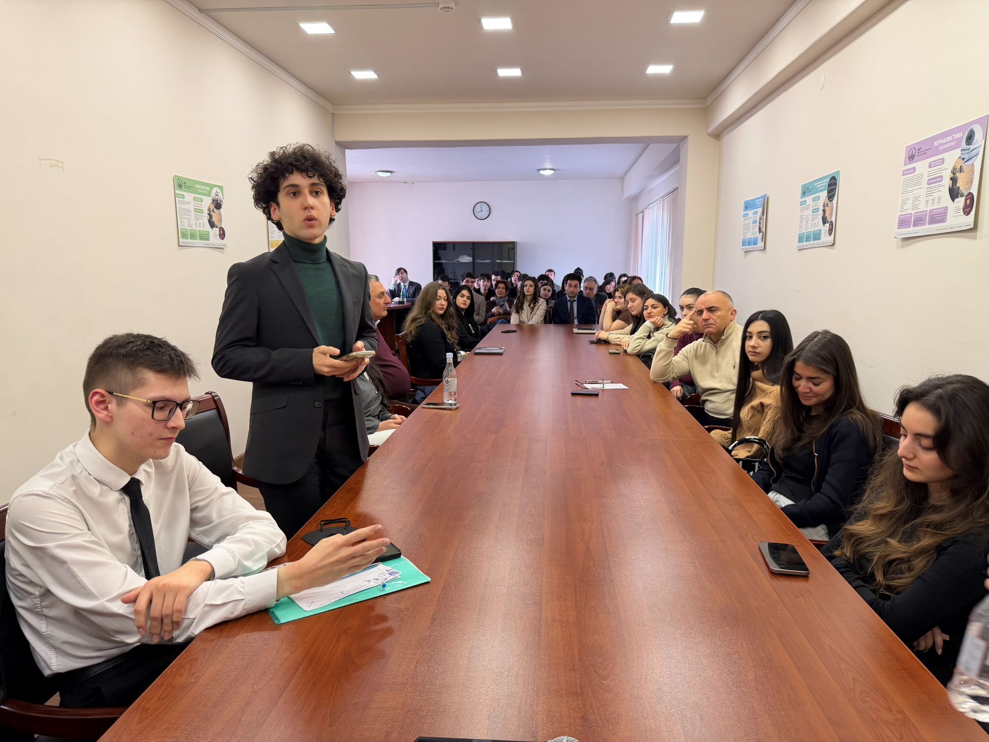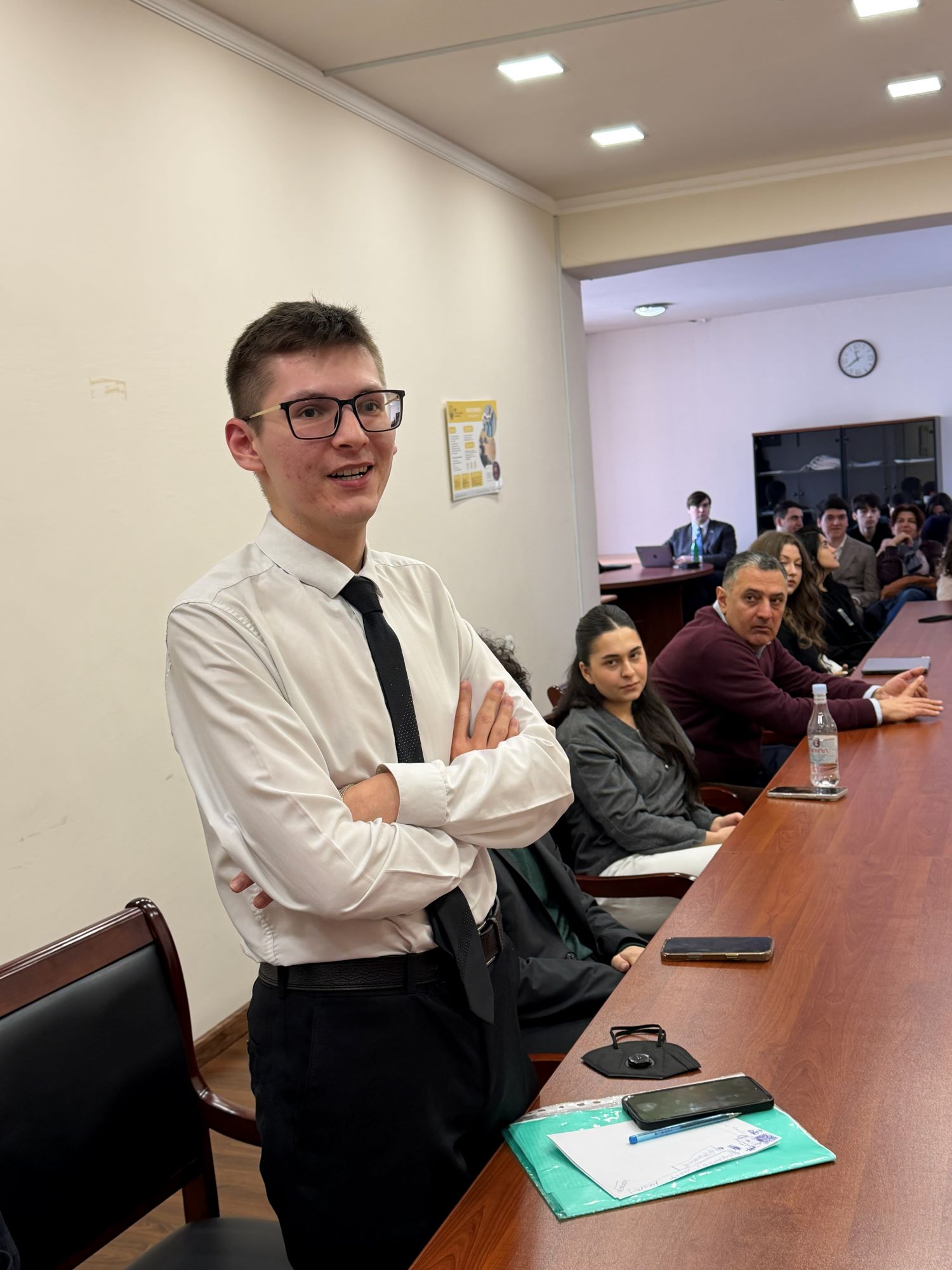Студентка 4 курса Марийка Погосян подчеркнула аналитическую насыщенность выступления: региональные конфликты постсоветского пространства были представлены как элементы более широкой динамики, а Южный Кавказ — как пространство пересечения интересов различных внешних акторов. Особый интерес вызвало рассуждение о том, как завершение российско-украинского конфликта может повлиять на трансформацию мирового порядка.