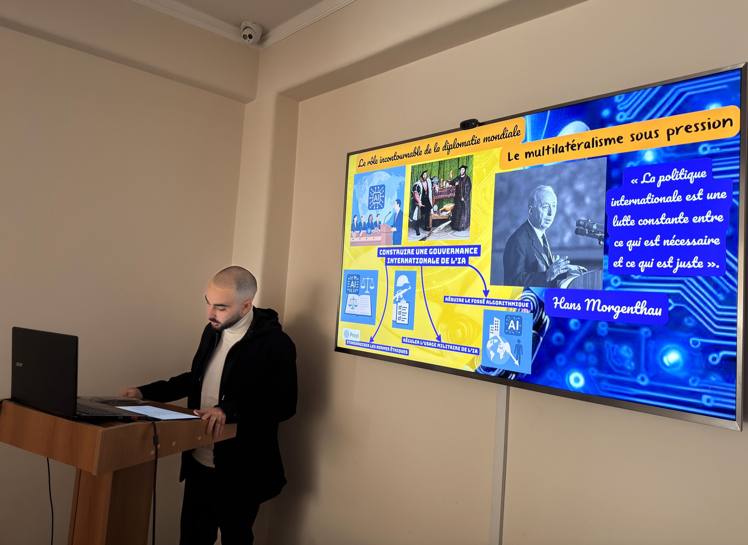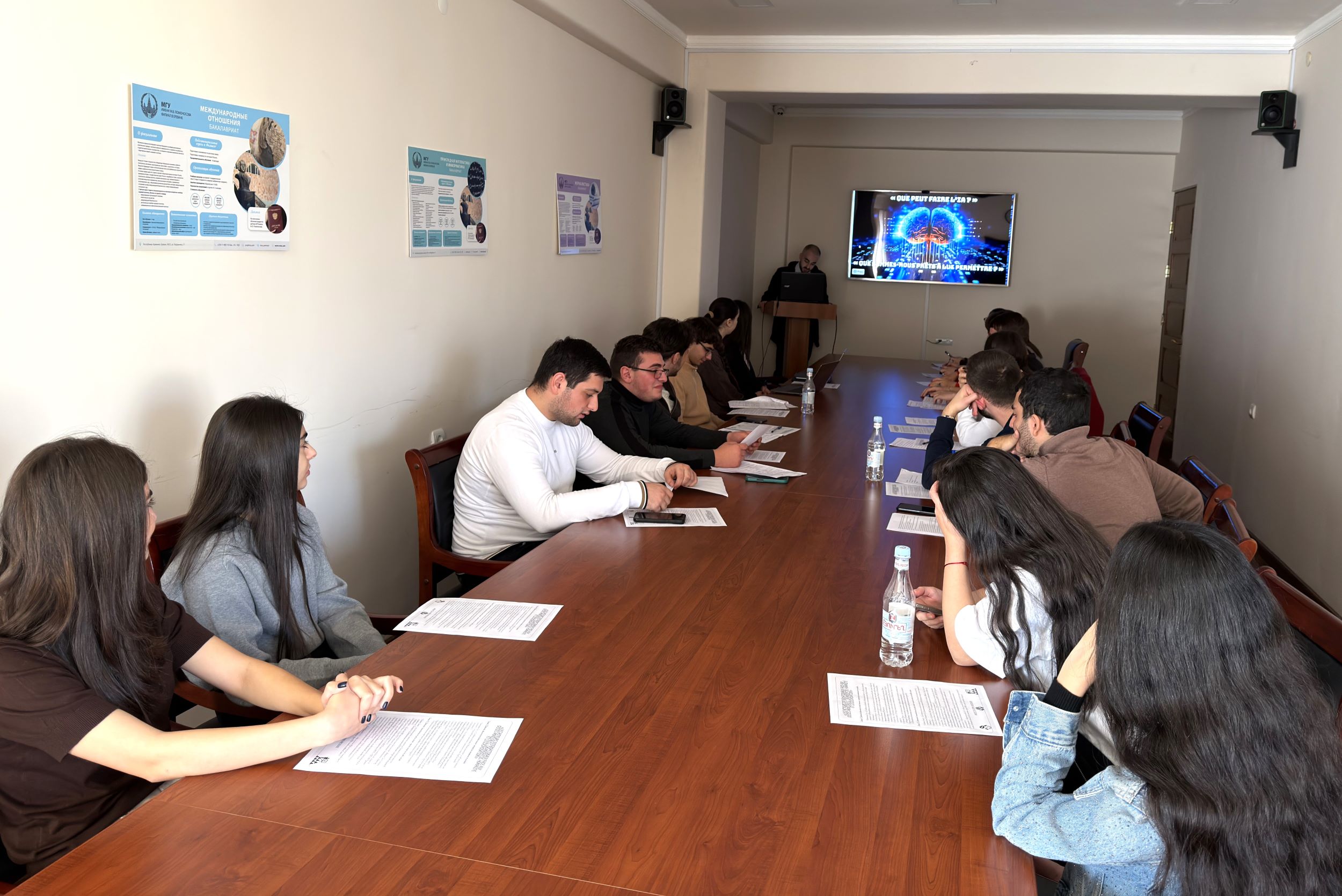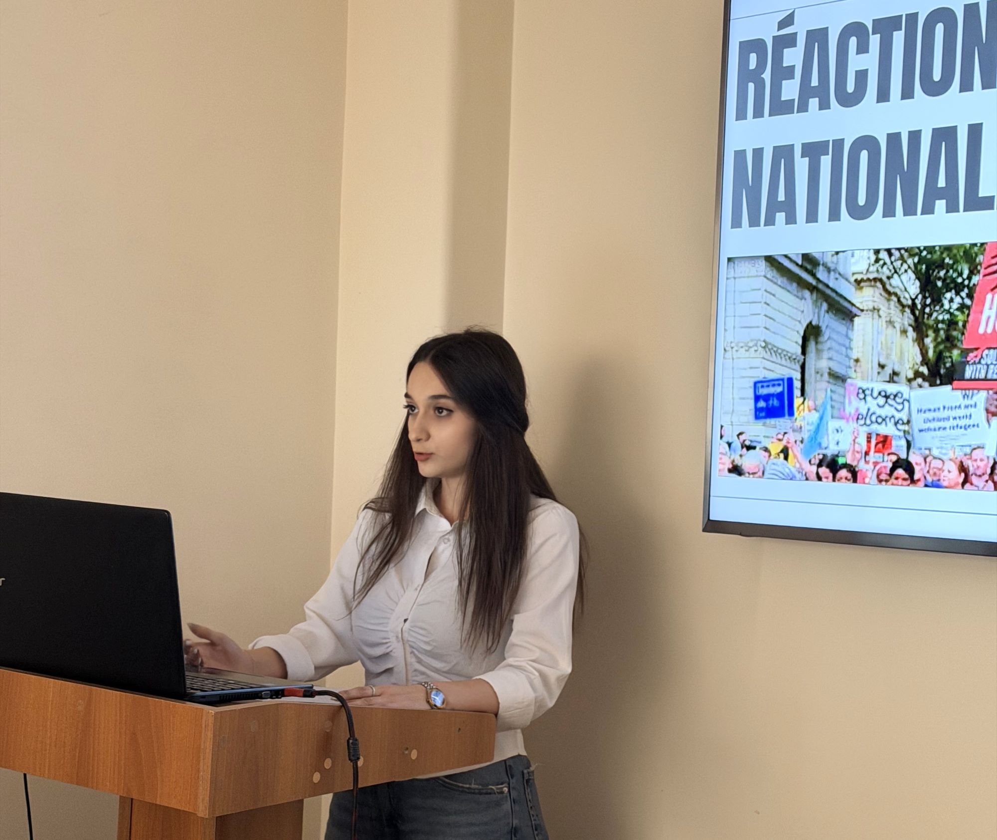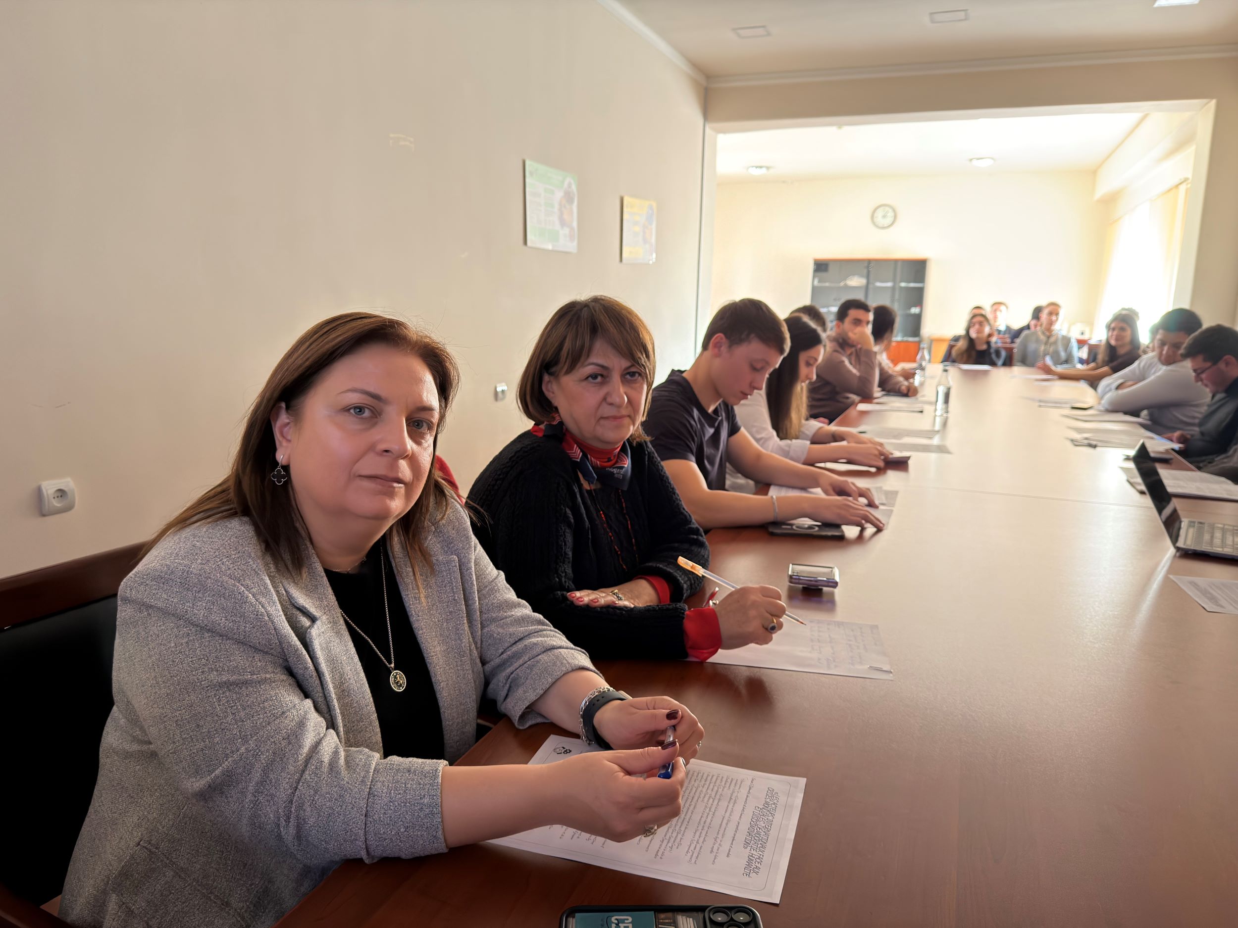 19 ноября 2025 года в конференц-зале Филиала МГУ имени М.В. Ломоносова в Ереване состоялся круглый стол-дискуссия на французском языке «Международные акторы перед лицом мировых кризисов: демократия, гуманизм и дискриминация». («Les acteurs internationaux face aux crises mondiales: démocratie, humanité et discrimination») Мероприятие прошло в рамках дисциплины «Французский язык» под руководством к.ф.н., доцента Л. А. Бабаян и доцента Л. Г. Карапетян.