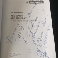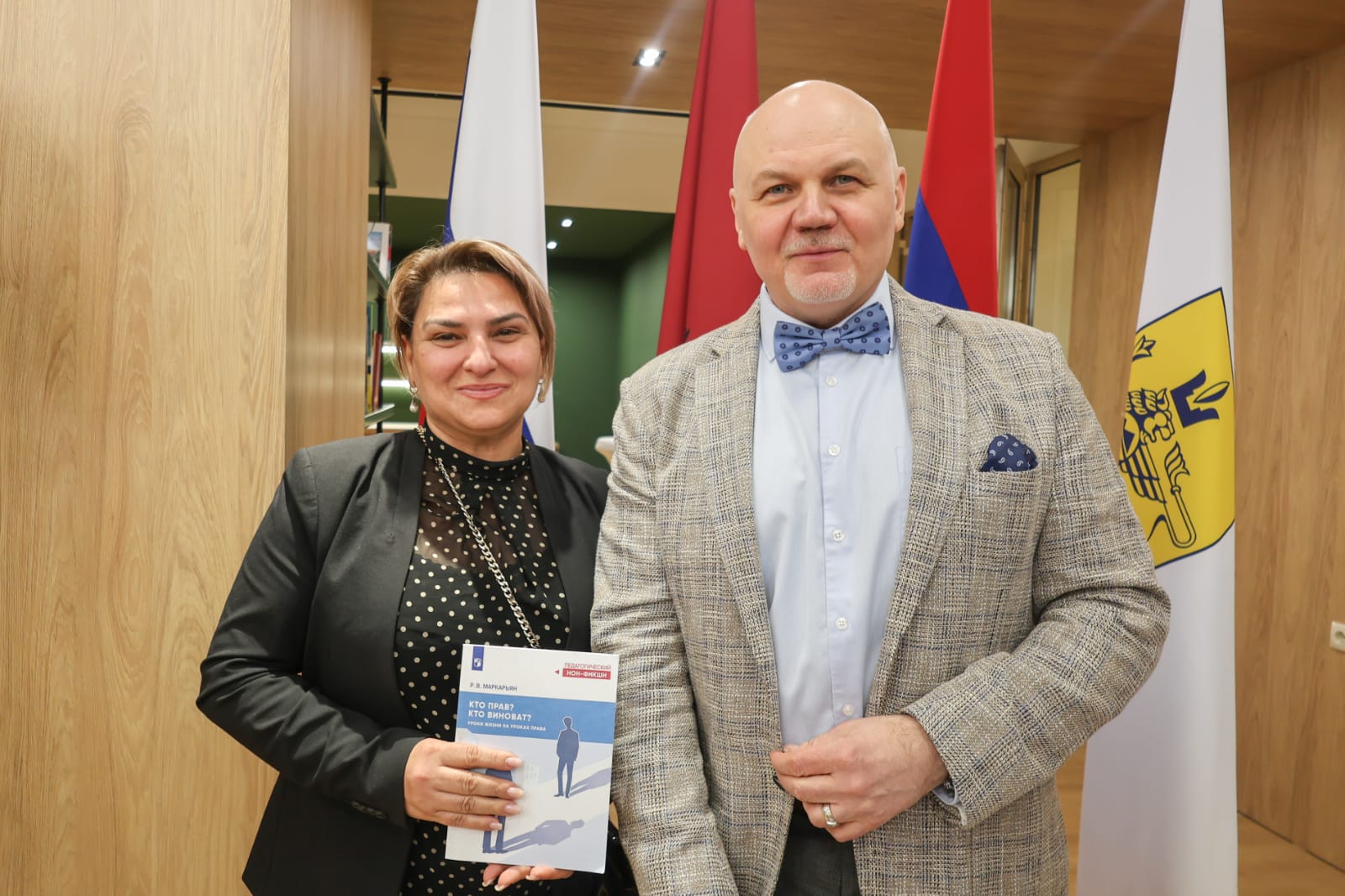 Сотрудник учебной части Филиала МГУ в Ереване А.А. Григорян в Доме Москвы в Ереване приняла участие в презентации учебного пособия «Кто прав? Кто виноват? Уроки жизни на уроках права», автором которого является российско-армянский юрист и писатель Рубен Валерьевич Маркарьян. Пособие предлагает оригинальный подход к изучению права – через анализ классических произведений русской литературы.