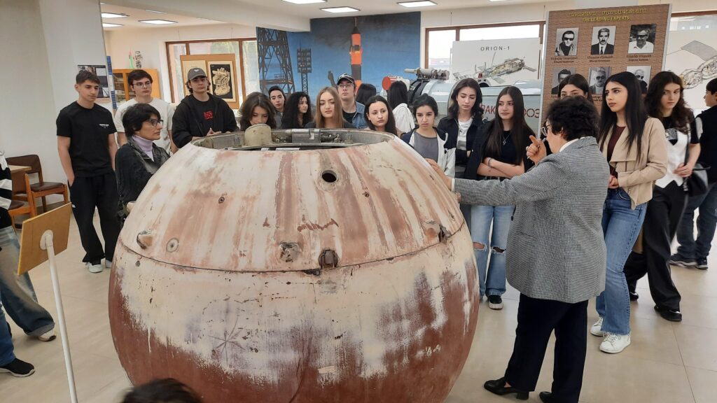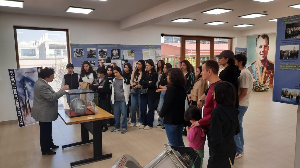 Студенты ознакомились с уникальными экспонатами, побывавшими на орбите, документами, демонстрирующие вклад армянских ученых в раннее исследование космоса при помощи орбитальных телескопов «Орион 1», «Орион 2 и другими важными свидетельствами исследования космоса. Студентам были представлены фотографии и документы о предполетной подготовке в Армении более 40 советских космонавтов, международные спутниковые программы, в которых сегодня участвуют армянские специалисты.