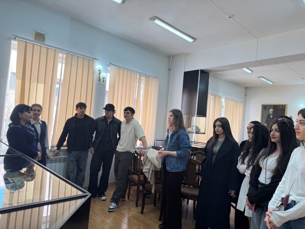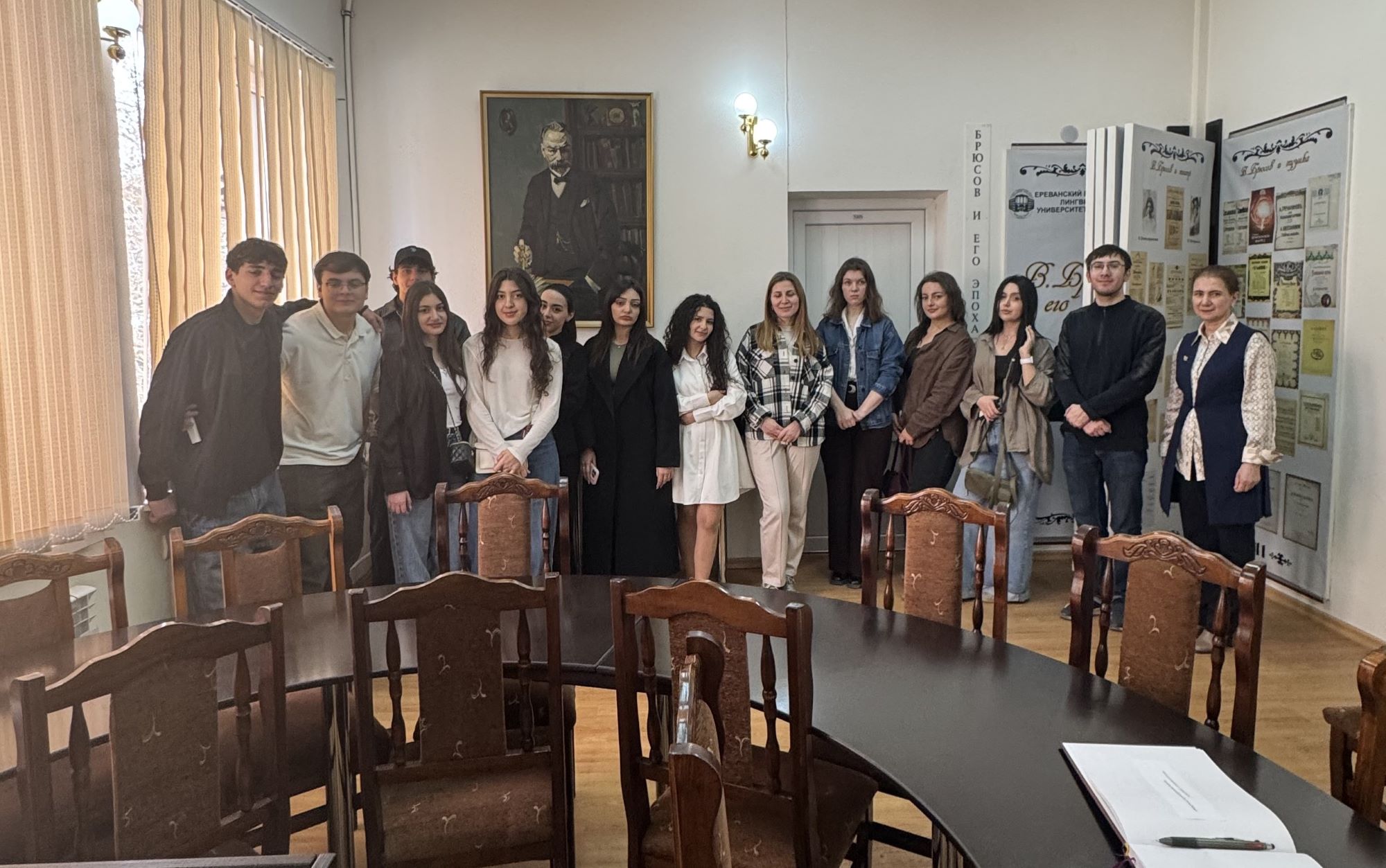 19 марта 2026 года студенты направления «Лингвистика» Филиала МГУ в Ереване в рамках дисциплины «Мир первого языка» посетили музей Валерия Брюсова в Государственном университете имени В.Я. Брюсова. В учебной экскурсии приняли участие руководитель направления К.Г. Сукиасян и преподаватель факультета иностранных языков и регионоведения МГУ имени М.В. Ломоносова к.ф.н., доцент Е.В. Коренева.