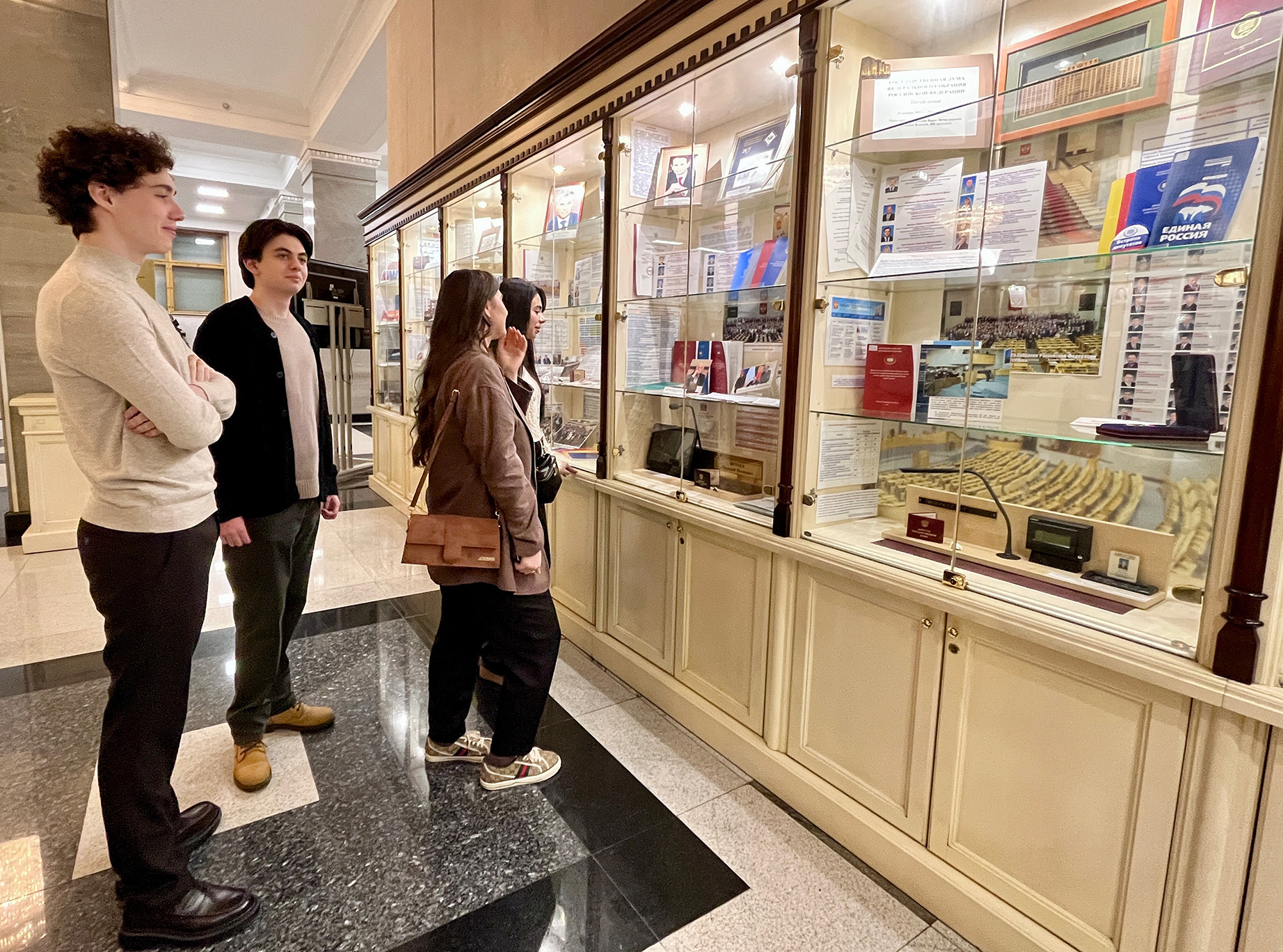 Кроме того, студенты получили возможность посетить Государственную Думу Федерального Собрания РФ и ознакомиться с работой российского парламента. Аспирант кафедры конституционного и муниципального права, главный консультант комитета по охране здоровья Орлова А.С. провела экскурсию по выставке, посвященной становлению российского парламентаризма, студенты посетили фракции, представленные в Государственной Думе, и ознакомились с внутренней структурой нижней палаты парламента. Экскурсия сопровождалась увлекательными рассказами о специфике законодательного процесса, в том числе удалось погрузиться в тонкости работы депутатов в комитетах Государственной Думы.