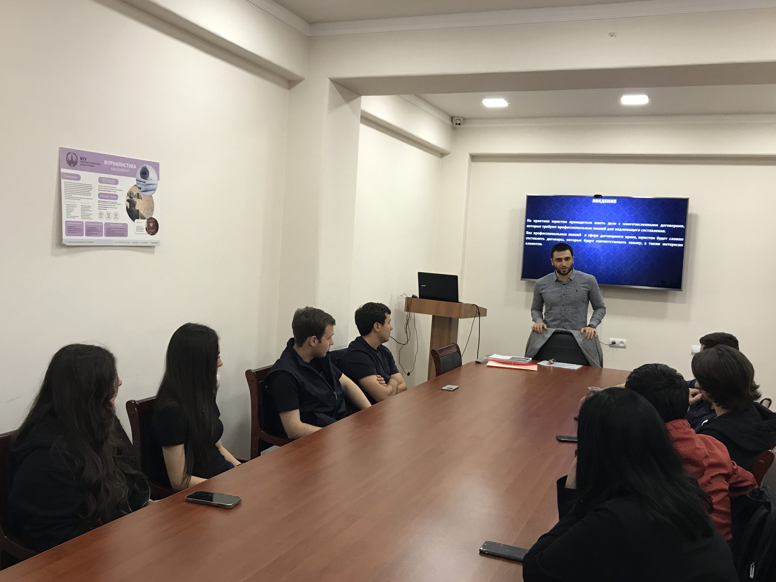 В Филиале МГУ в Ереване в рамках цикла мероприятий «Встреча с выпускником» состоялся практический семинар выпускника бакалавриата и магистратуры Филиала, международного юрисконсульта компании «DIGITAIN» Аракеляна Роберта Арамовича на тему: «Особенности составления договоров».